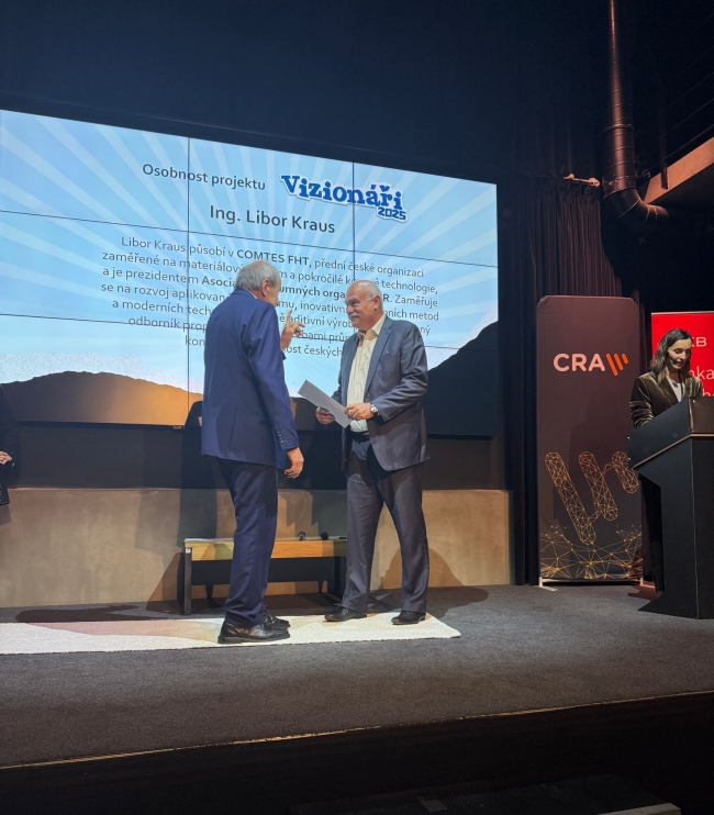 Osobností projektu Vizionáři 2025 se stal prezident Asociace výzkumných organizací ČR a předseda představenstva COMTES FHT a.s. Ing. Libor Kraus. Ocenění je za dlouhodobý přínos českému materiálovému výzkumu, vývoji a šíření dobrého jména českých inovací ve světě.